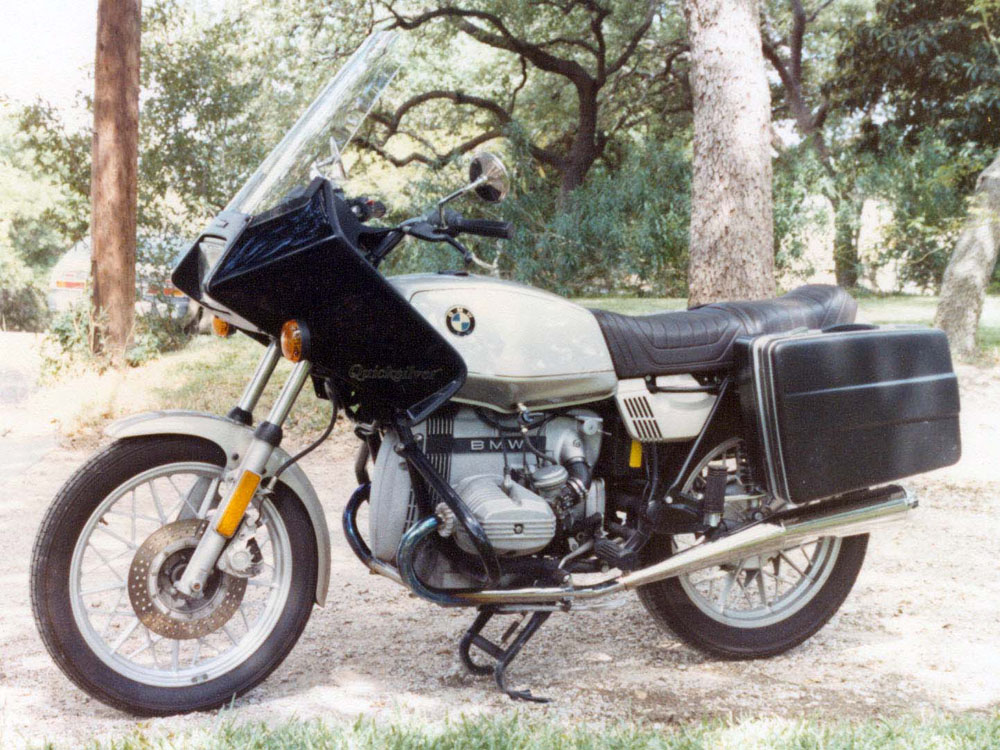 The R65 was my first four-stroke motorcycle. It didn't have a lot of power or speed, but it was nimble, got good gas mileage, had a large gas tank, and was a quite capable commuting and long-trip motorcycle. It had a recurring problem with oil leaking from the oil filter cover, which was fixed by BMW with a shim between the engine and the cover. I took a trip from Austin to Florida and back with my brother in 1979, and also took a solo trip from Seattle to Texas and back in the summer of 1981. I put a frame-mounted Quicksilver fairing on it and also added Krauser saddlebags for touring. I took a lot of grief for its "disco brown" seat.